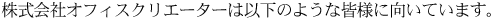 株式会社オフィスクリエーターはクリエーター専門の派遣会社です。